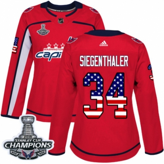 >Women's Adidas Washington Capitals #34 Jonas Siegenthaler Authentic Red USA Flag Fashion 2018 Stanley Cup Final Champions NHL Jersey