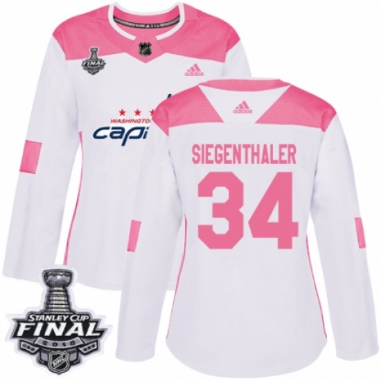 Women's Adidas Washington Capitals #34 Jonas Siegenthaler Authentic White/Pink Fashion 2018 Stanley Cup Final NHL Jersey