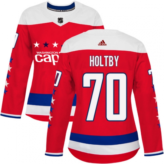 >Women's Adidas Washington Capitals #70 Braden Holtby Authentic Red Alternate NHL Jersey