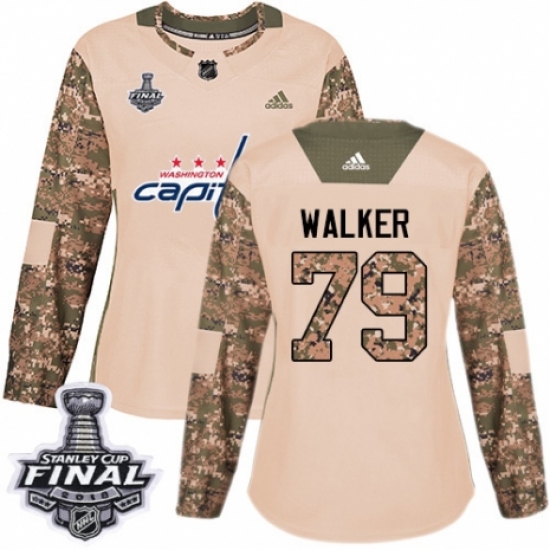 Women's Adidas Washington Capitals #79 Nathan Walker Authentic Camo Veterans Day Practice 2018 Stanley Cup Final Champions NHL Jersey
