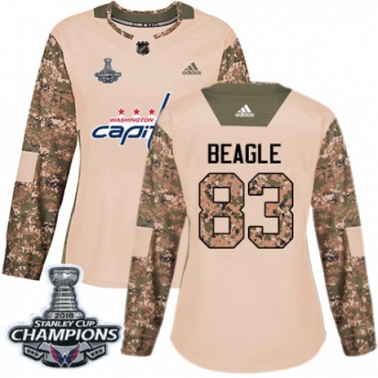 Women's Adidas Washington Capitals #83 Jay Beagle Authentic Camo Veterans Day Practice 2018 Stanley Cup Final Champions NHL Jersey
