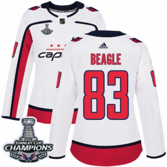 Women's Adidas Washington Capitals #83 Jay Beagle Authentic White Away 2018 Stanley Cup Final Champions NHL Jersey