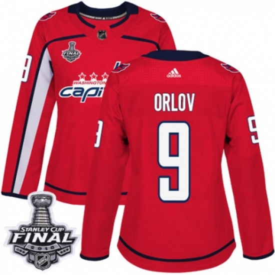 Women's Adidas Washington Capitals #9 Dmitry Orlov Authentic Red Home 2018 Stanley Cup Final NHL Jersey