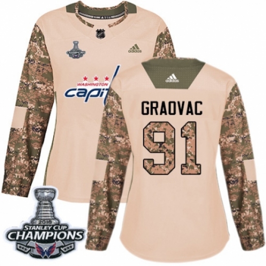 Women's Adidas Washington Capitals #91 Tyler Graovac Authentic Camo Veterans Day Practice 2018 Stanley Cup Final Champions NHL Jersey