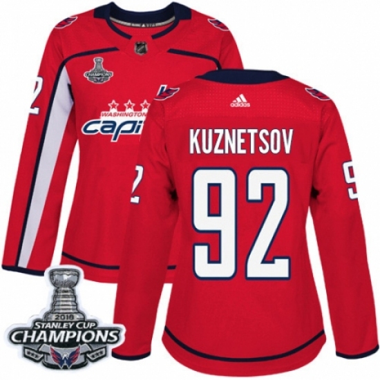 Women's Adidas Washington Capitals #92 Evgeny Kuznetsov Authentic Red Home 2018 Stanley Cup Final Champions NHL Jersey
