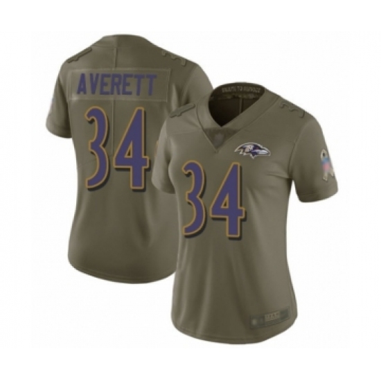 Women's Baltimore Ravens #34 Anthony Averett Limited Olive 2017 Salute to Service Football Jersey