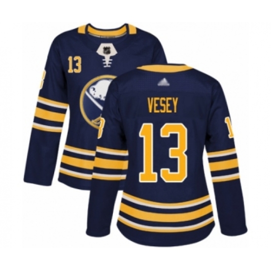>Women's Buffalo Sabres #13 Jimmy Vesey Authentic Navy Blue Home Hockey Jersey