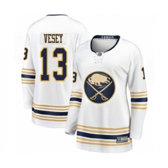 >Women's Buffalo Sabres #13 Jimmy Vesey Fanatics Branded White 50th Season Breakaway Hockey Jersey