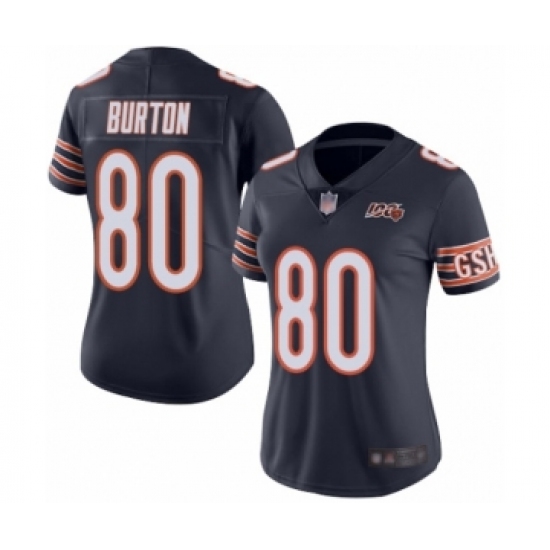 >Women's Chicago Bears #80 Trey Burton Navy Blue Team Color 100th Season Limited Football Jersey