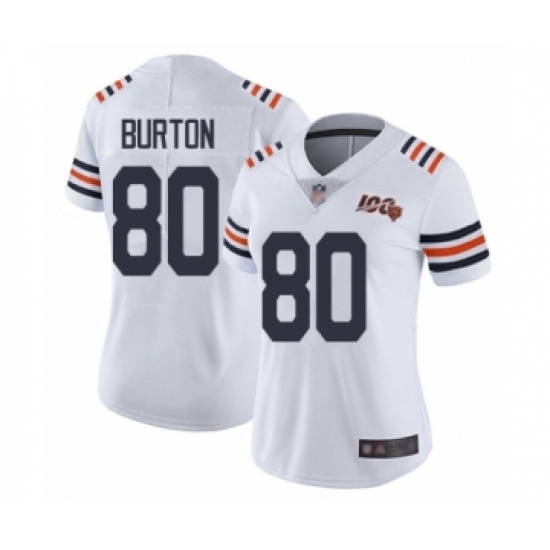 >Women's Chicago Bears #80 Trey Burton White 100th Season Limited Football Jersey