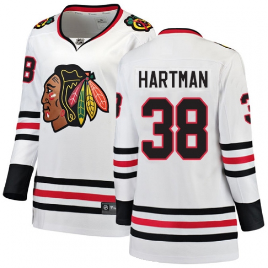 Home>NHL>Chicago Blackhawks>Ryan Hartman>Women's Chicago Blackhawks #38 Ryan Hartman Authentic White Away Fanatics Branded Breakaway NHL Jersey