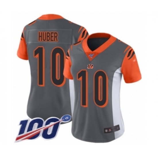 Women's Cincinnati Bengals #10 Kevin Huber Limited Silver Inverted Legend 100th Season Football Jersey