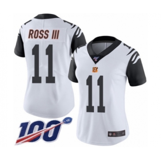 >Women's Cincinnati Bengals #11 John Ross Limited White Rush Vapor Untouchable 100th Season Football Jersey