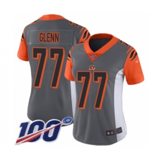 Women's Cincinnati Bengals #77 Cordy Glenn Limited Silver Inverted Legend 100th Season Football Jersey