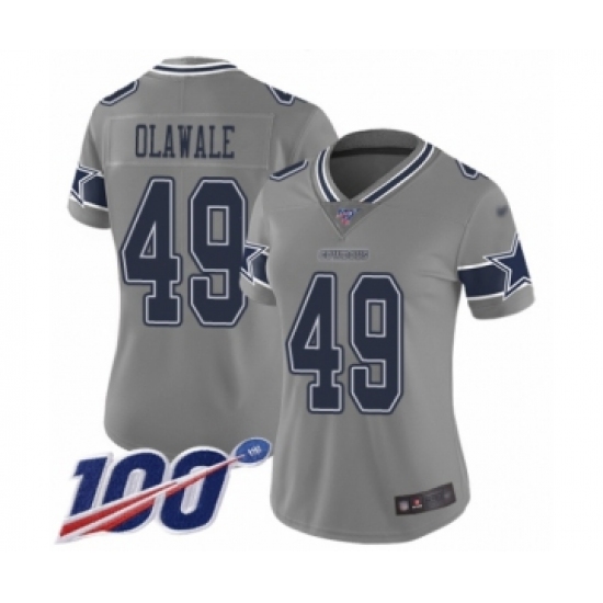 >Women's Dallas Cowboys #49 Jamize Olawale Limited Gray Inverted Legend 100th Season Football Jersey