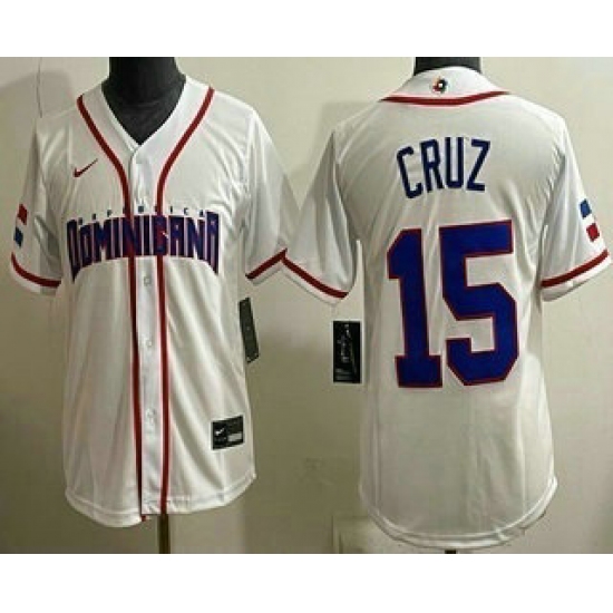 Women's Dominican #15 Oneil Cruz White 2026 World Baseball Classic Cool Base Jersey