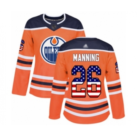 Women's Edmonton Oilers #26 Brandon Manning Authentic Orange USA Flag Fashion Hockey Jersey