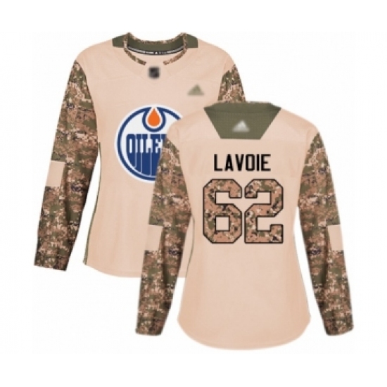 >Women's Edmonton Oilers #62 Raphael Lavoie Authentic Camo Veterans Day Practice Hockey Jersey