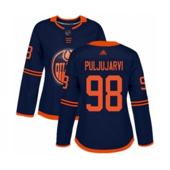 >Women's Edmonton Oilers #98 Jesse Puljujarvi Authentic Navy Blue Alternate Hockey Jersey
