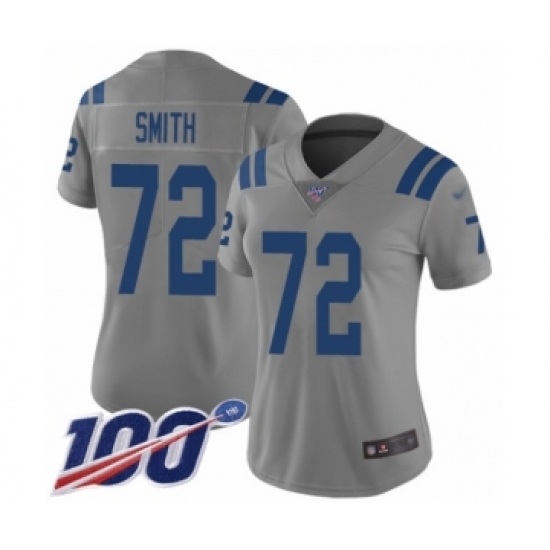 Women's Indianapolis Colts #72 Braden Smith Limited Gray Inverted Legend 100th Season Football Jersey