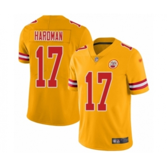 Women's Kansas City Chiefs #17 Mecole Hardman Limited Gold Inverted Legend Football Jersey