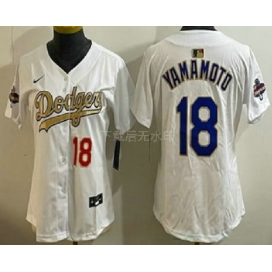 Women's Los Angeles Dodgers #18 Yoshinobu Yamamoto White Gold Champions Limited Jersey
