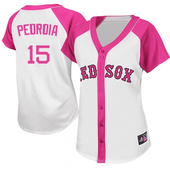 Home>MLB>Boston Red Sox>Dustin Pedroia>Women's Majestic Boston Red Sox #15 Dustin Pedroia Replica White/Pink Splash Fashion MLB Jersey