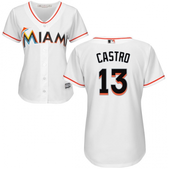 Home>MLB>Miami Marlins>Starlin Castro>Women's Majestic Miami Marlins #13 Starlin Castro Replica White Home Cool Base MLB Jersey