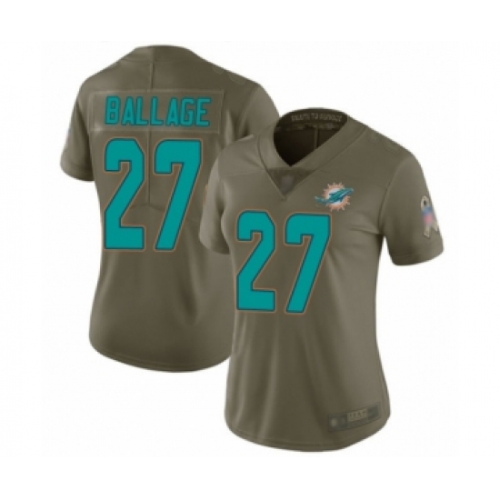 >Women's Miami Dolphins #27 Kalen Ballage Limited Olive 2017 Salute to Service Football Jersey