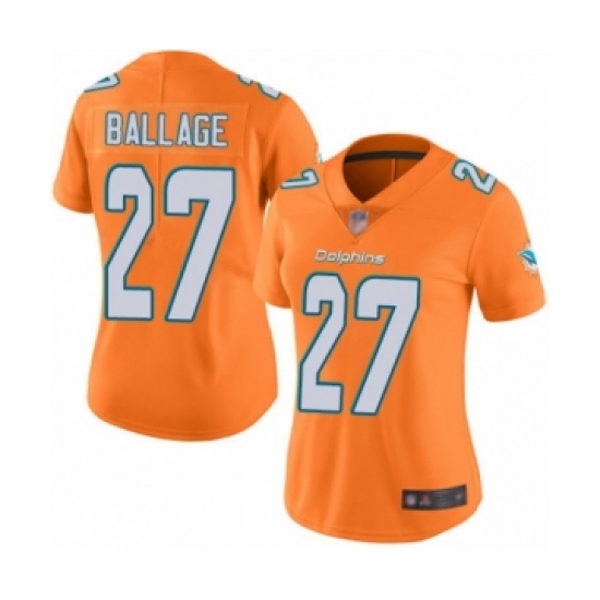 >Women's Miami Dolphins #27 Kalen Ballage Limited Orange Rush Vapor Untouchable Football Jersey