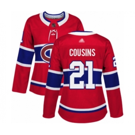 >Women's Montreal Canadiens #21 Nick Cousins Authentic Red Home Hockey Jersey