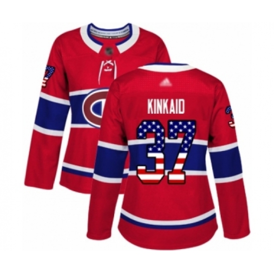 >Women's Montreal Canadiens #37 Keith Kinkaid Authentic Red USA Flag Fashion Hockey Jersey