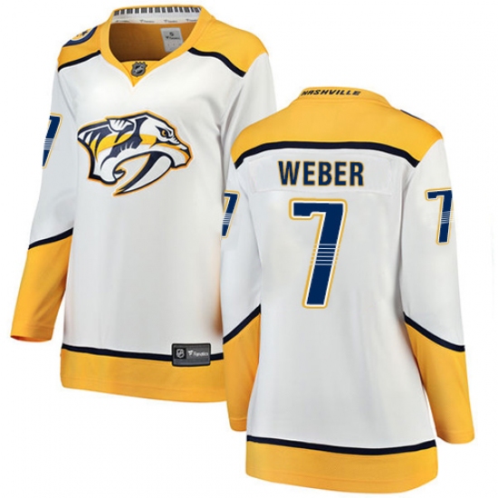 Home>NHL>Nashville Predators>Yannick Weber>Women's Nashville Predators #7 Yannick Weber Fanatics Branded White Away Breakaway NHL Jersey
