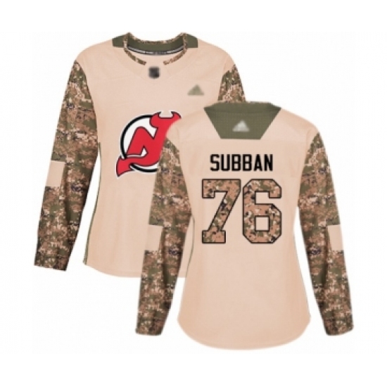 >Women's New Jersey Devils #76 P. K. Subban Authentic Camo Veterans Day Practice Hockey Jersey