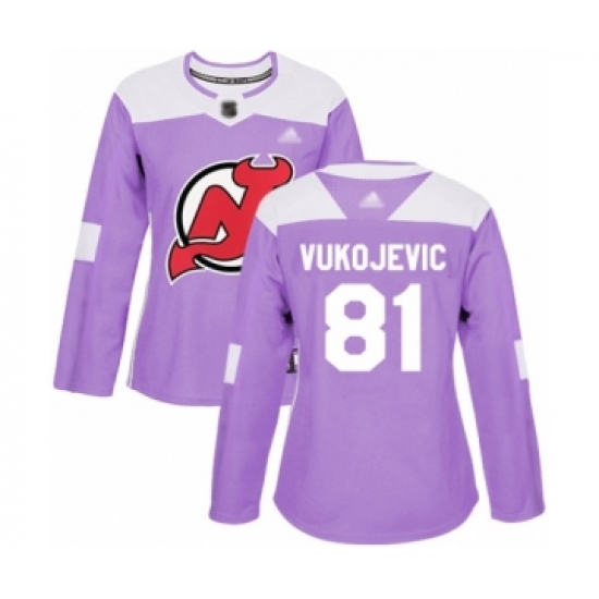 >Women's New Jersey Devils #81 Michael Vukojevic Authentic Purple Fights Cancer Practice Hockey Jersey