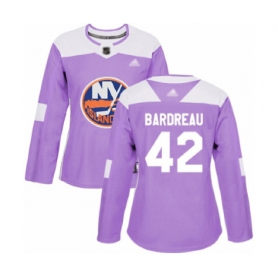 >Women's New York Islanders #42 Cole Bardreau Authentic Purple Fights Cancer Practice Hockey Jersey
