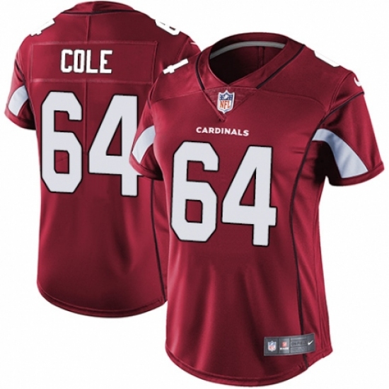 Women's Nike Arizona Cardinals #64 Mason Cole Red Team Color Vapor Untouchable Limited Player NFL Jersey