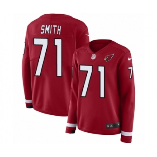 >Women's Nike Arizona Cardinals #71 Andre Smith Limited Red Therma Long Sleeve NFL Jersey