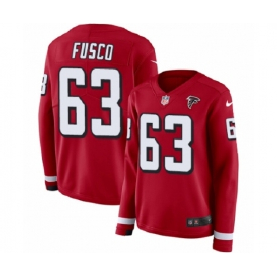 >Women's Nike Atlanta Falcons #63 Brandon Fusco Limited Red Therma Long Sleeve NFL Jersey