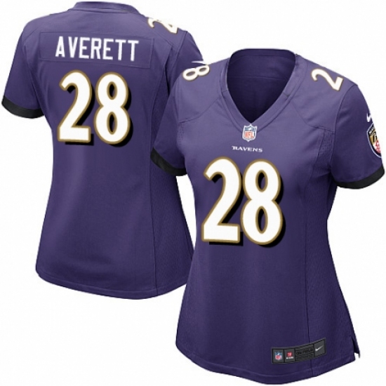 >Women's Nike Baltimore Ravens #28 Anthony Averett Game Purple Team Color NFL Jersey