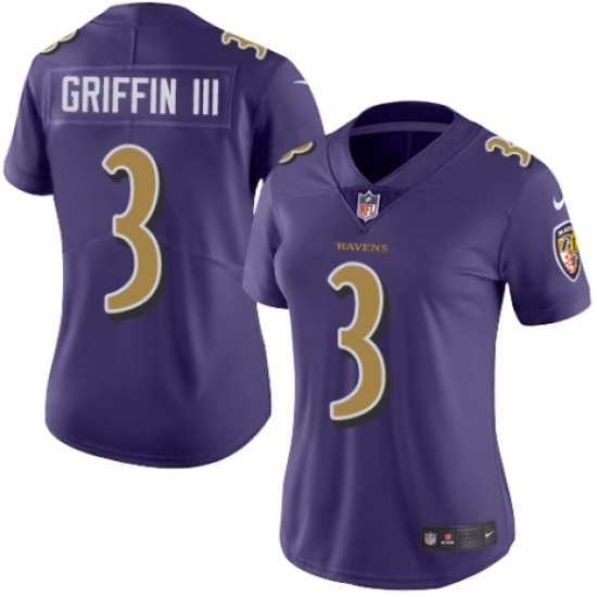 Women's Nike Baltimore Ravens #3 Robert Griffin III Limited Purple Rush Vapor Untouchable NFL Jersey