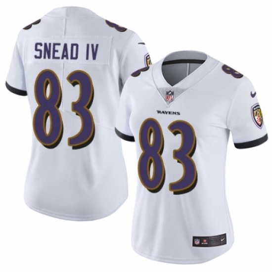 Women's Nike Baltimore Ravens #83 Willie Snead IV White Vapor Untouchable Limited Player NFL Jersey
