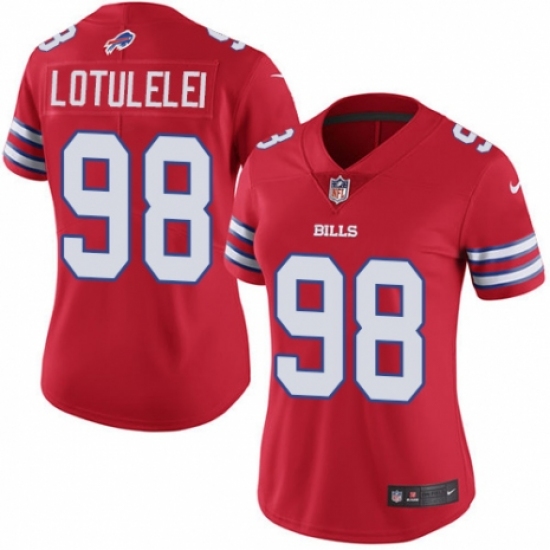 >Women's Nike Buffalo Bills #98 Star Lotulelei Limited Red Rush Vapor Untouchable NFL Jersey