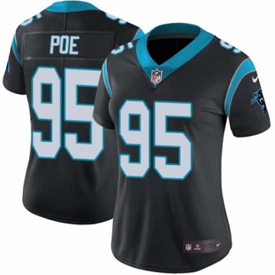 >Women's Nike Carolina Panthers #95 Dontari Poe Black Team Color Vapor Untouchable Limited Player NFL Jersey
