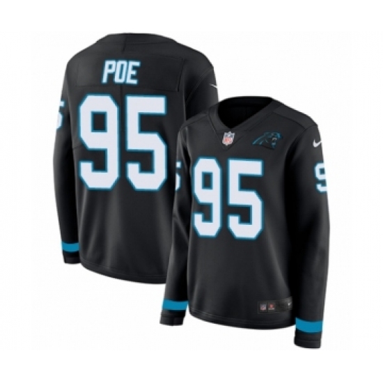 >Women's Nike Carolina Panthers #95 Dontari Poe Limited Black Therma Long Sleeve NFL Jersey