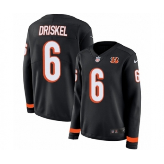 Women's Nike Cincinnati Bengals #6 Jeff Driskel Limited Black Therma Long Sleeve NFL Jersey