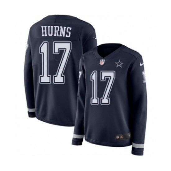 >Women's Nike Dallas Cowboys #17 Allen Hurns Limited Navy Blue Therma Long Sleeve NFL Jersey