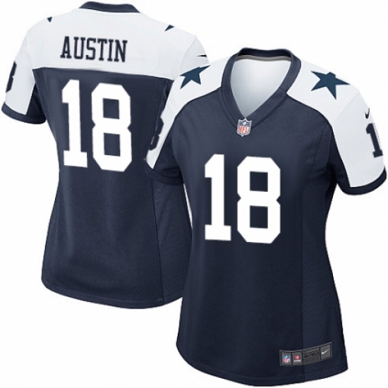 >Women's Nike Dallas Cowboys #18 Tavon Austin Game Navy Blue Throwback Alternate NFL Jersey