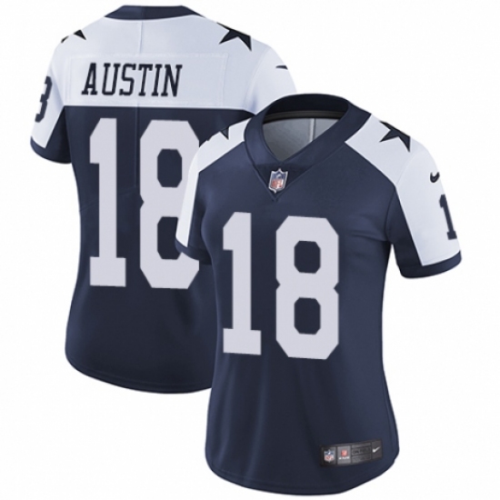 >Women's Nike Dallas Cowboys #18 Tavon Austin Navy Blue Throwback Alternate Vapor Untouchable Limited Player NFL Jersey