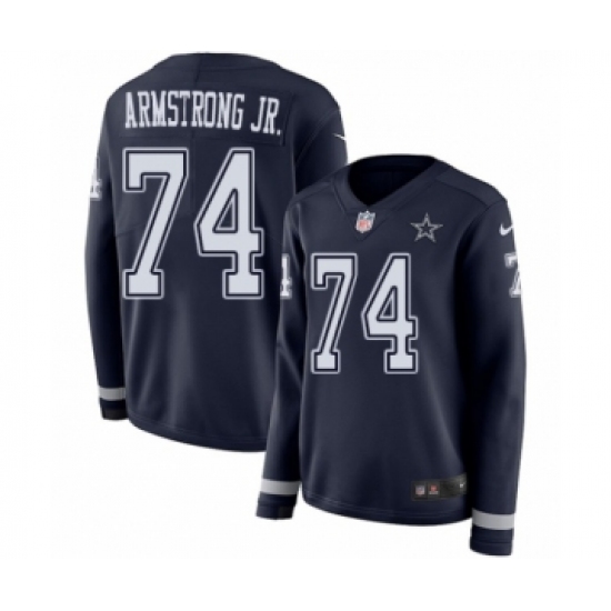 >Women's Nike Dallas Cowboys #74 Dorance Armstrong Jr. Limited Navy Blue Therma Long Sleeve NFL Jersey